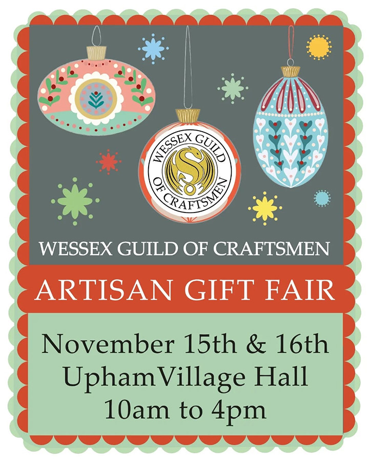 I'll be exhibiting work with the Wessex Guild of Craftsmen at Upham Village Hall this weekend.
